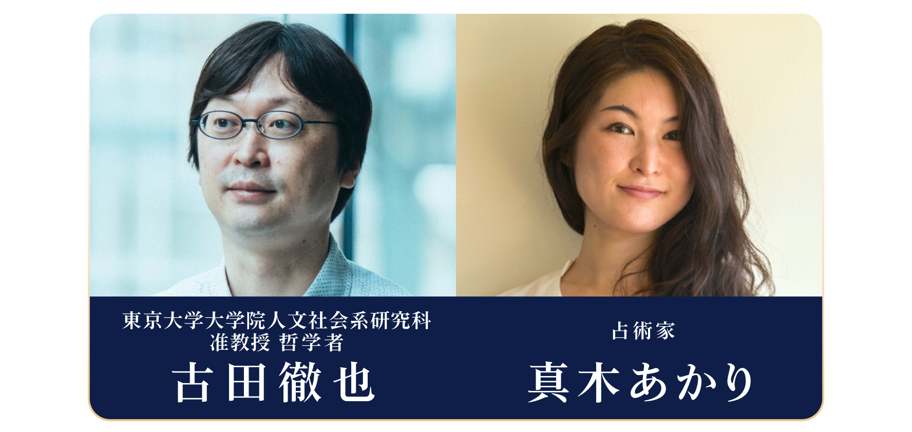 瞬時に紡いだ一言がその先の人生を縛る呪いにも、未来を照らす光にもなる――その「言葉の力」を、言語と倫理を研究する哲学者・古田徹也さんと占い師の真木あかりさんが探究します。 -