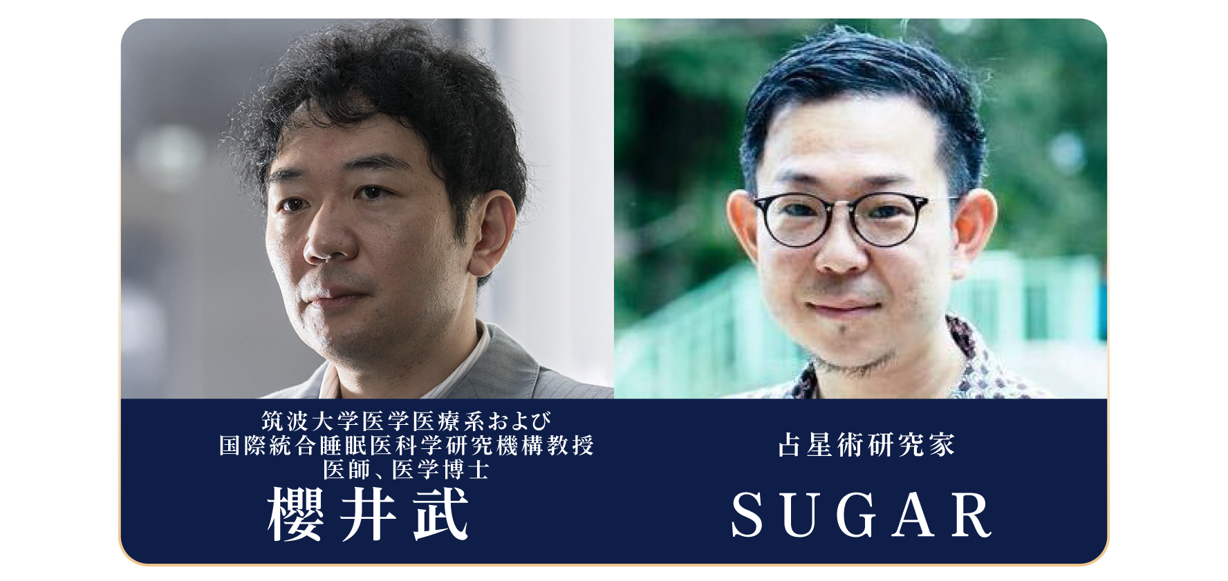 心はどこで芽生え、何がその舵を握るのか。神経科学の第一人者である櫻井武さんと、哲学する占星術家・SUGARさんに占いが揺さぶる「感情」についてお話ししていただきます。 -